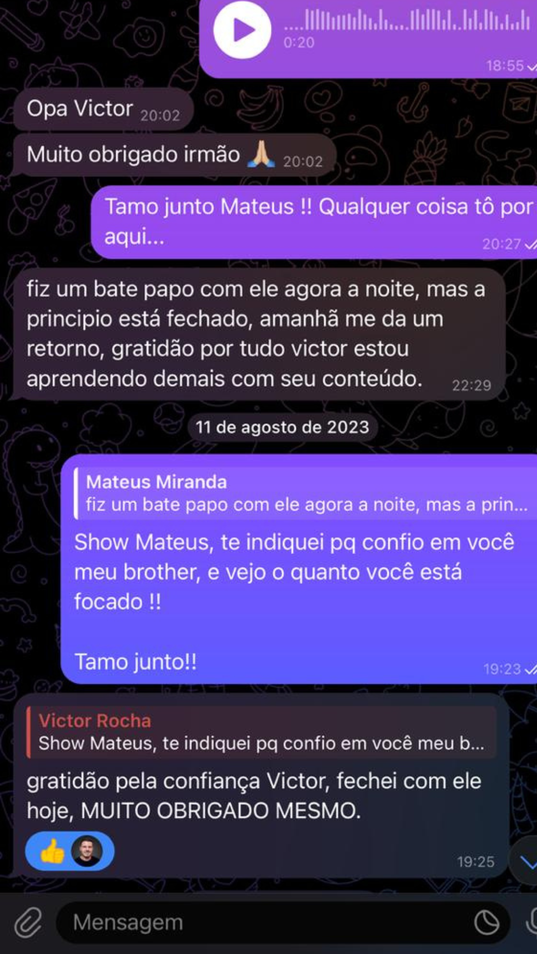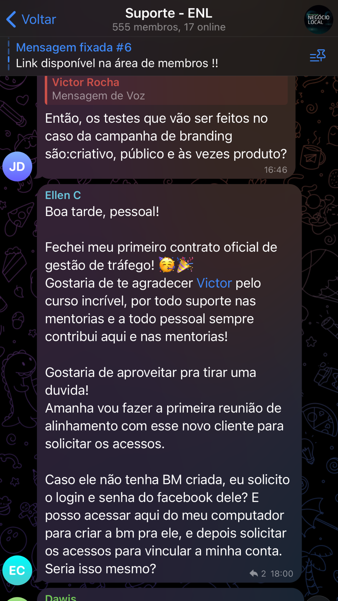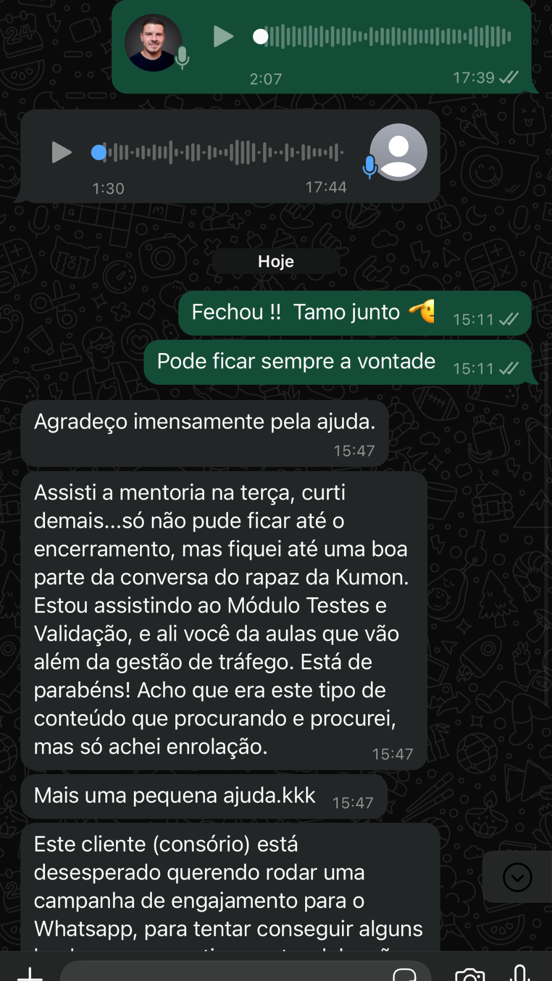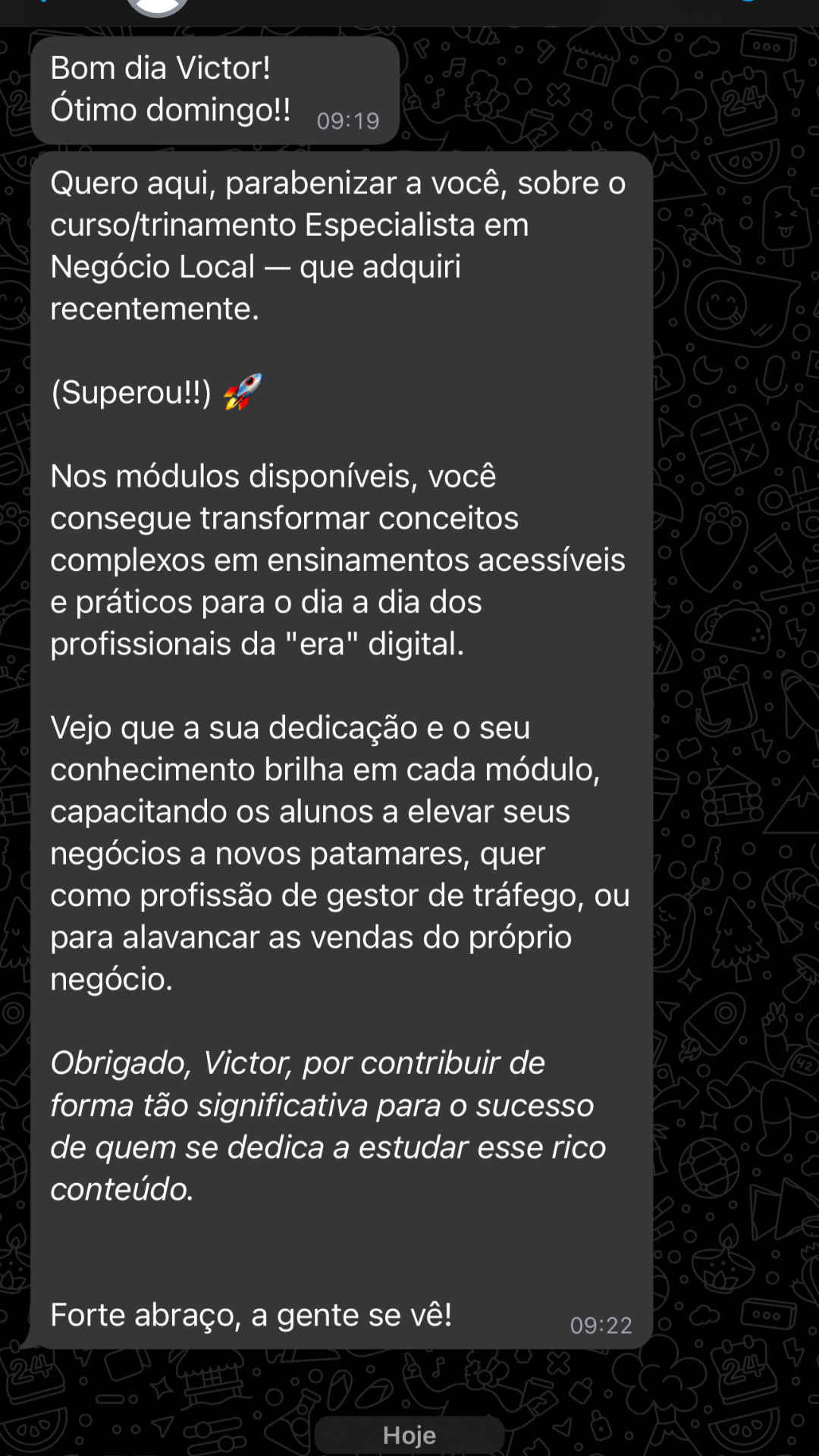 Com mais de 5 anos de experiência prática em gestão de tráfego para negócios locais, gerenciou mais de 60 contas de anúncios em diversos nichos, investiu múltiplos 6 dígitos em tráfego, anunciando desde produtos personalizados para bebês até componentes automotivos, além de trabalhar com grandes clientes como faculdades e redes de farmácias.